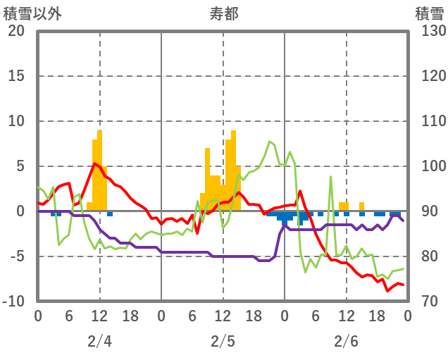 | 日 | 時 | 気温 | 降水 | 風向/風速 | 日照 | 積雪 | 降雪 |