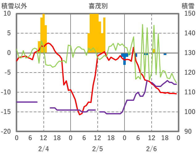 | 日 | 時 | 気温 | 降水 | 風向/風速 | 日照 | 積雪 | 降雪 |