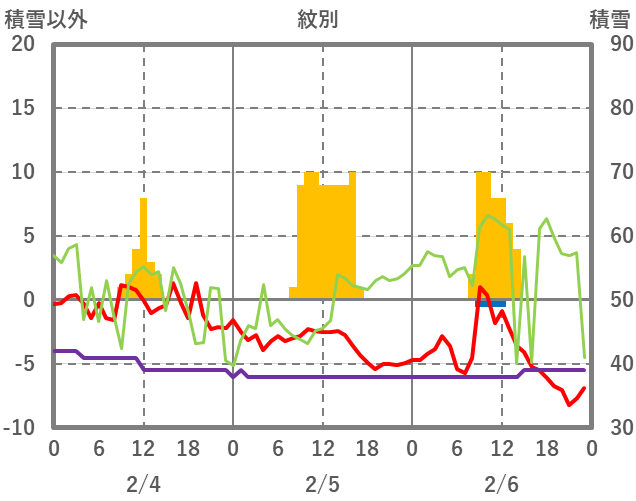 | 日 | 時 | 気温 | 降水 | 風向/風速 | 日照 | 積雪 | 降雪 |