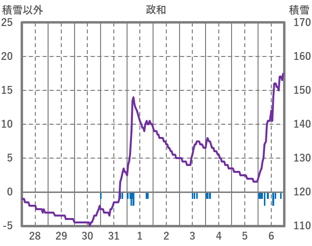 | 日 | 時 | 気温 | 降水 | 風向/風速 | 日照 | 積雪 | 降雪 |