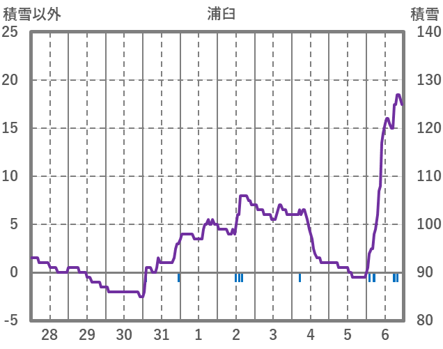 | 日 | 時 | 気温 | 降水 | 風向/風速 | 日照 | 積雪 | 降雪 |