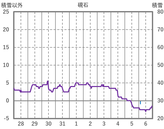 | 日 | 時 | 気温 | 降水 | 風向/風速 | 日照 | 積雪 | 降雪 |