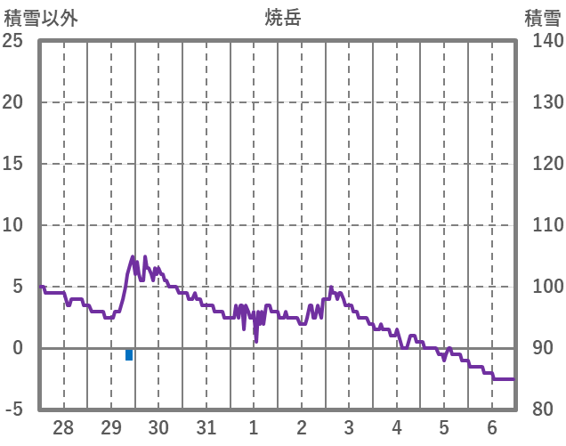 | 日 | 時 | 気温 | 降水 | 風向/風速 | 日照 | 積雪 | 降雪 |