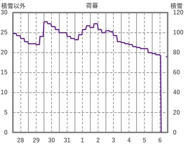| 日 | 時 | 気温 | 降水 | 風向/風速 | 日照 | 積雪 | 降雪 |