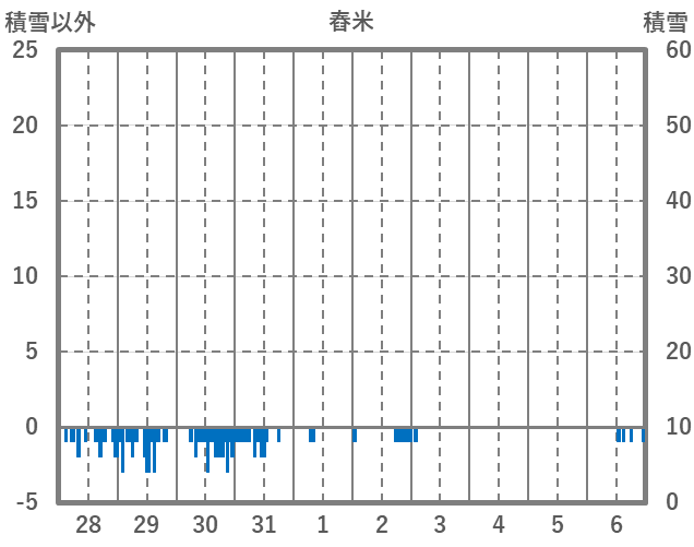 | 日 | 時 | 気温 | 降水 | 風向/風速 | 日照 | 積雪 | 降雪 |