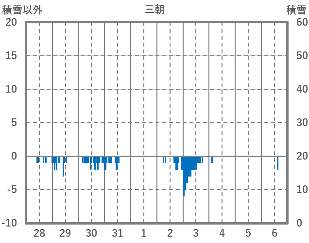 | 日 | 時 | 気温 | 降水 | 風向/風速 | 日照 | 積雪 | 降雪 |
