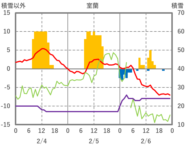 | 日 | 時 | 気温 | 降水 | 風向/風速 | 日照 | 積雪 | 降雪 |