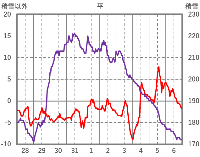 | 日 | 時 | 気温 | 降水 | 風向/風速 | 日照 | 積雪 | 降雪 |