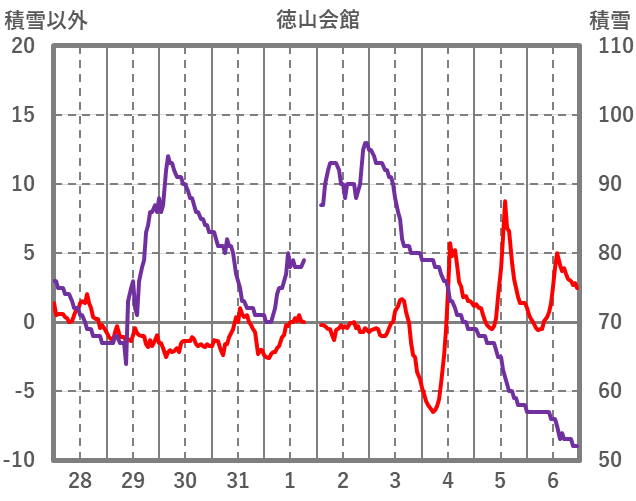 | 日 | 時 | 気温 | 降水 | 風向/風速 | 日照 | 積雪 | 降雪 |