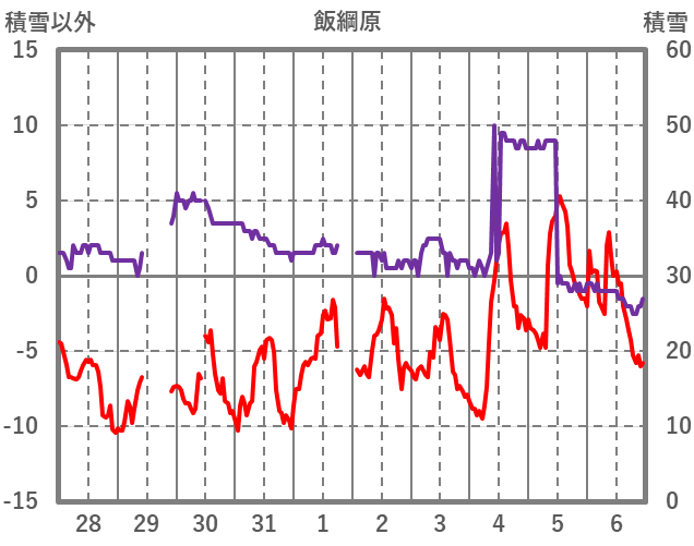 | 日 | 時 | 気温 | 降水 | 風向/風速 | 日照 | 積雪 | 降雪 |