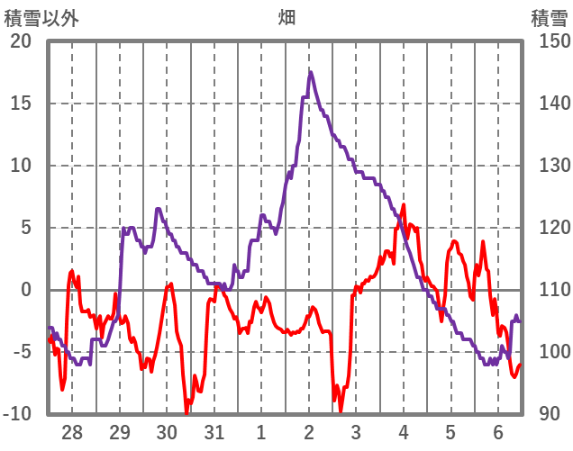 | 日 | 時 | 気温 | 降水 | 風向/風速 | 日照 | 積雪 | 降雪 |