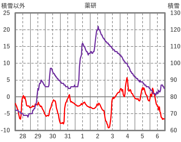 | 日 | 時 | 気温 | 降水 | 風向/風速 | 日照 | 積雪 | 降雪 |