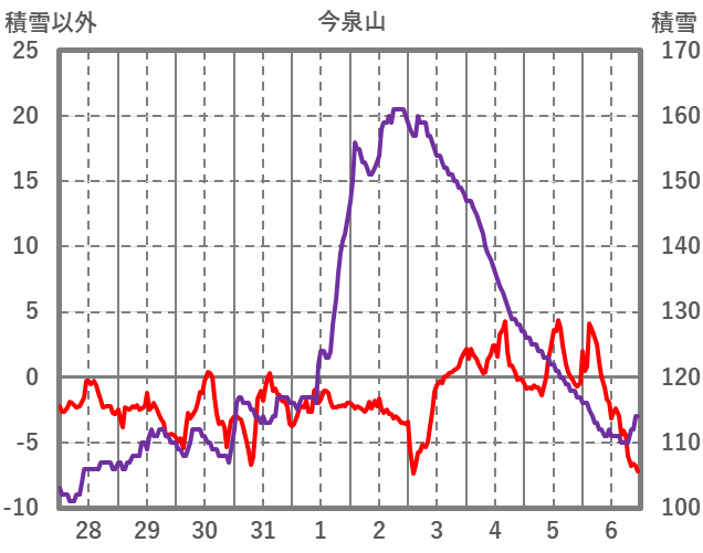 | 日 | 時 | 気温 | 降水 | 風向/風速 | 日照 | 積雪 | 降雪 |