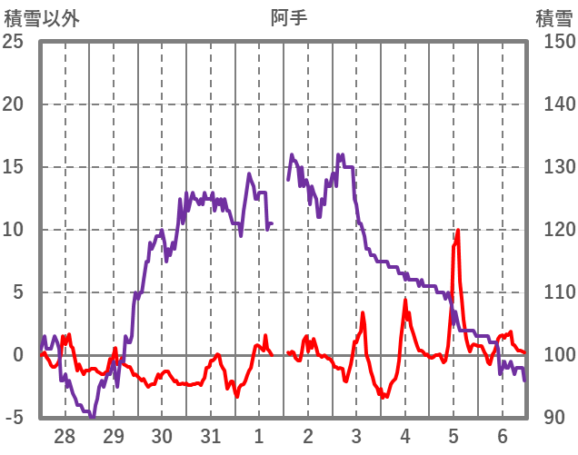 | 日 | 時 | 気温 | 降水 | 風向/風速 | 日照 | 積雪 | 降雪 |