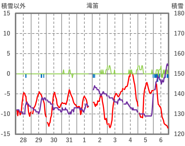 | 日 | 時 | 気温 | 降水 | 風向/風速 | 日照 | 積雪 | 降雪 |