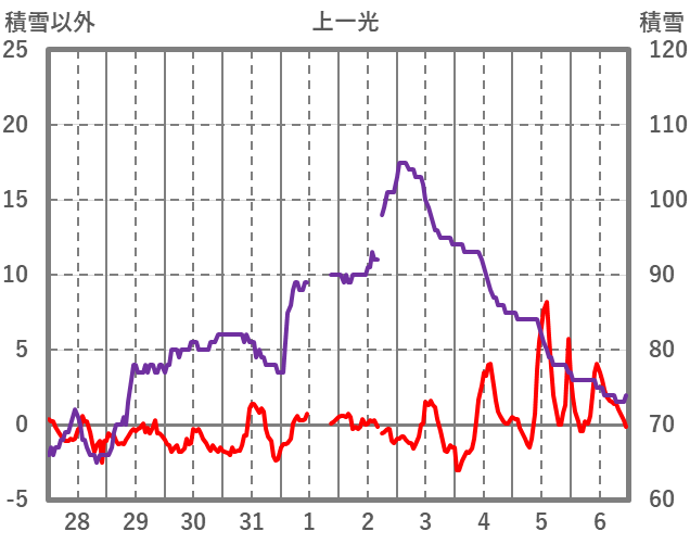 | 日 | 時 | 気温 | 降水 | 風向/風速 | 日照 | 積雪 | 降雪 |