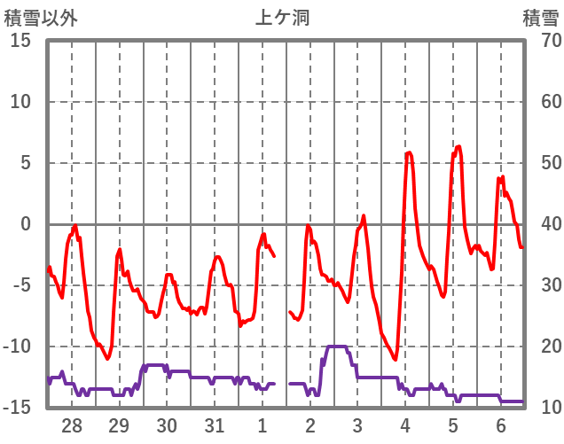 | 日 | 時 | 気温 | 降水 | 風向/風速 | 日照 | 積雪 | 降雪 |