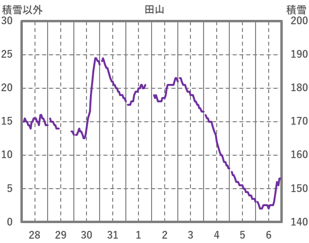| 日 | 時 | 気温 | 降水 | 風向/風速 | 日照 | 積雪 | 降雪 |