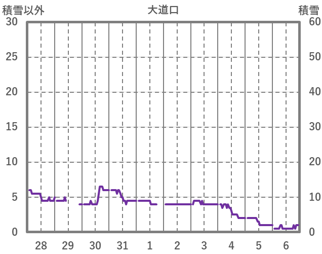 | 日 | 時 | 気温 | 降水 | 風向/風速 | 日照 | 積雪 | 降雪 |