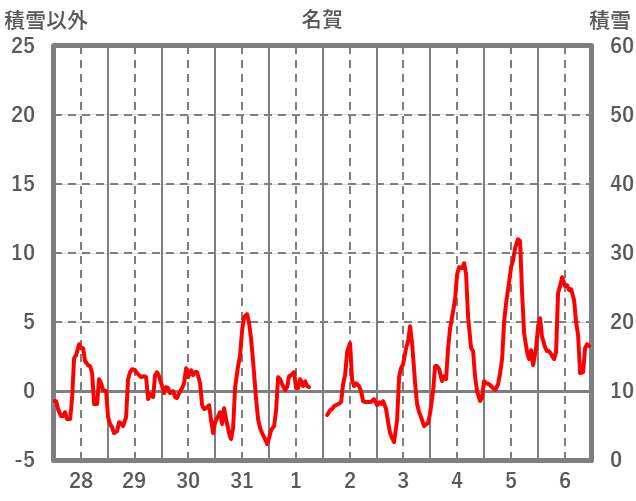 | 日 | 時 | 気温 | 降水 | 風向/風速 | 日照 | 積雪 | 降雪 |