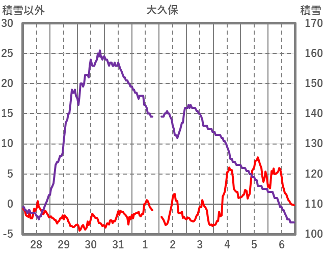 | 日 | 時 | 気温 | 降水 | 風向/風速 | 日照 | 積雪 | 降雪 |