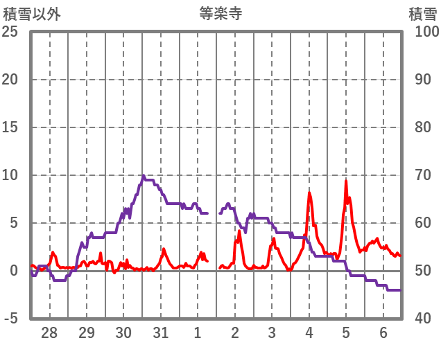 | 日 | 時 | 気温 | 降水 | 風向/風速 | 日照 | 積雪 | 降雪 |
