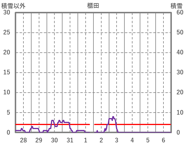 | 日 | 時 | 気温 | 降水 | 風向/風速 | 日照 | 積雪 | 降雪 |