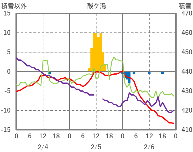 | 日 | 時 | 気温 | 降水 | 風向/風速 | 日照 | 積雪 | 降雪 |