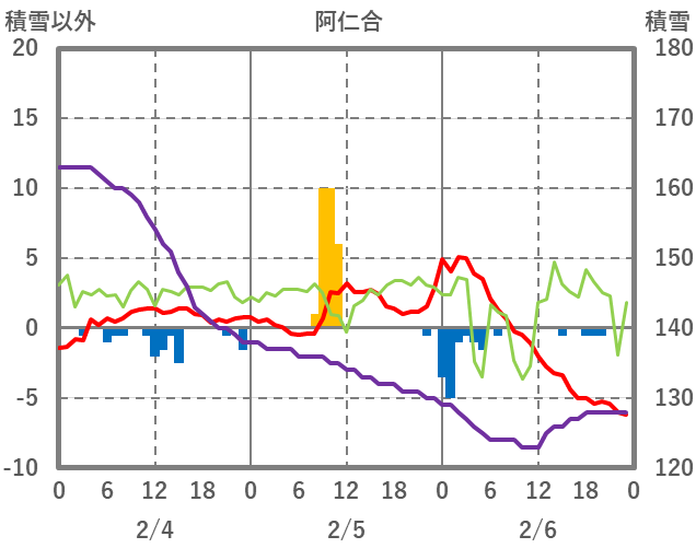 | 日 | 時 | 気温 | 降水 | 風向/風速 | 日照 | 積雪 | 降雪 |