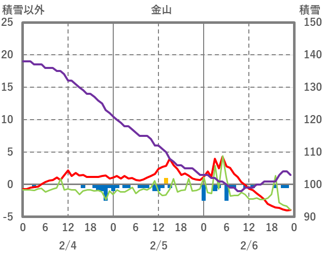 | 日 | 時 | 気温 | 降水 | 風向/風速 | 日照 | 積雪 | 降雪 |
