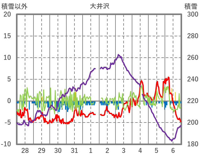 | 日 | 時 | 気温 | 降水 | 風向/風速 | 日照 | 積雪 | 降雪 |