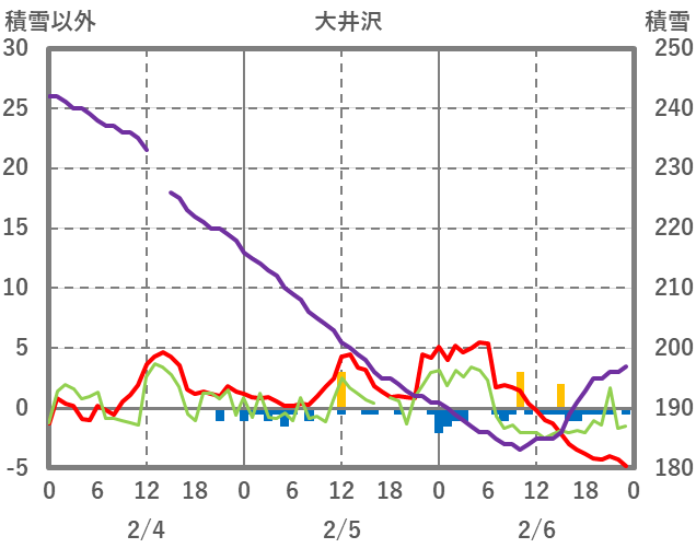 | 日 | 時 | 気温 | 降水 | 風向/風速 | 日照 | 積雪 | 降雪 |