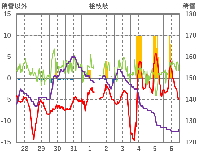 | 日 | 時 | 気温 | 降水 | 風向/風速 | 日照 | 積雪 | 降雪 |