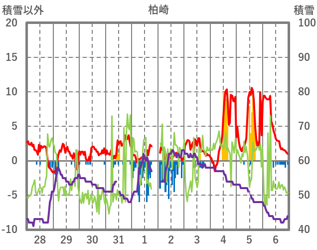 | 日 | 時 | 気温 | 降水 | 風向/風速 | 日照 | 積雪 | 降雪 |