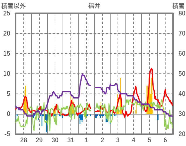 | 日 | 時 | 気温 | 降水 | 風向/風速 | 日照 | 積雪 | 降雪 |