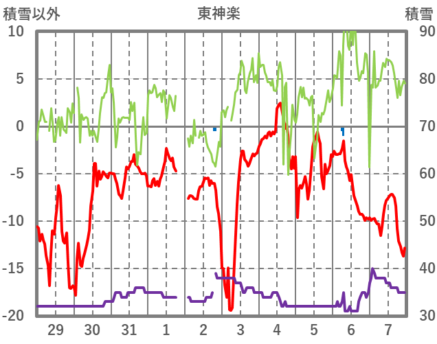 | 日 | 時 | 気温 | 降水 | 風向/風速 | 日照 | 積雪 | 降雪 |