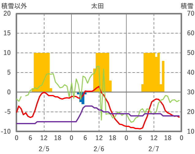 | 日 | 時 | 気温 | 降水 | 風向/風速 | 日照 | 積雪 | 降雪 |