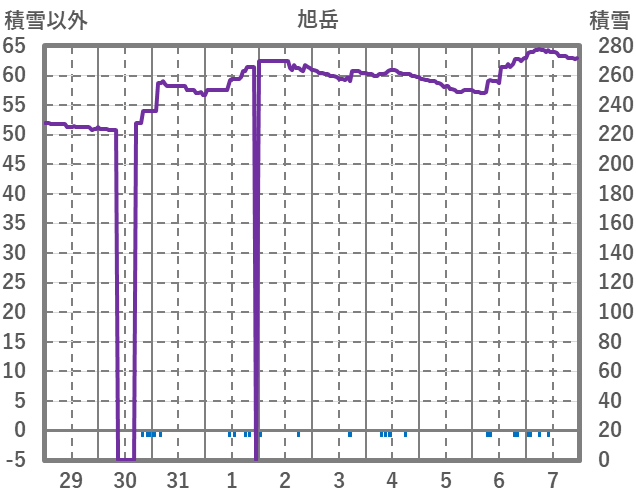 | 日 | 時 | 気温 | 降水 | 風向/風速 | 日照 | 積雪 | 降雪 |