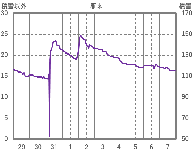 | 日 | 時 | 気温 | 降水 | 風向/風速 | 日照 | 積雪 | 降雪 |