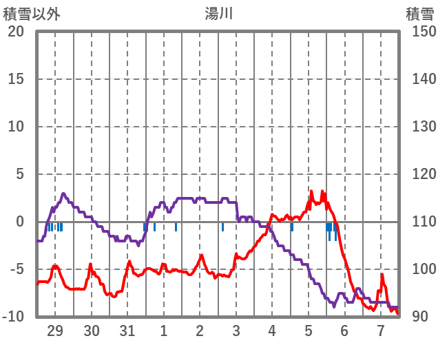 | 日 | 時 | 気温 | 降水 | 風向/風速 | 日照 | 積雪 | 降雪 |