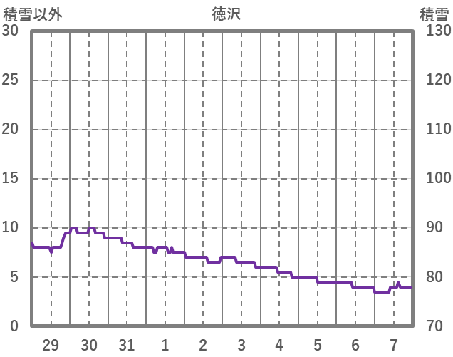 | 日 | 時 | 気温 | 降水 | 風向/風速 | 日照 | 積雪 | 降雪 |
