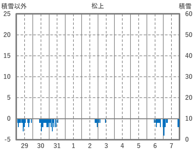 | 日 | 時 | 気温 | 降水 | 風向/風速 | 日照 | 積雪 | 降雪 |