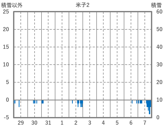 | 日 | 時 | 気温 | 降水 | 風向/風速 | 日照 | 積雪 | 降雪 |