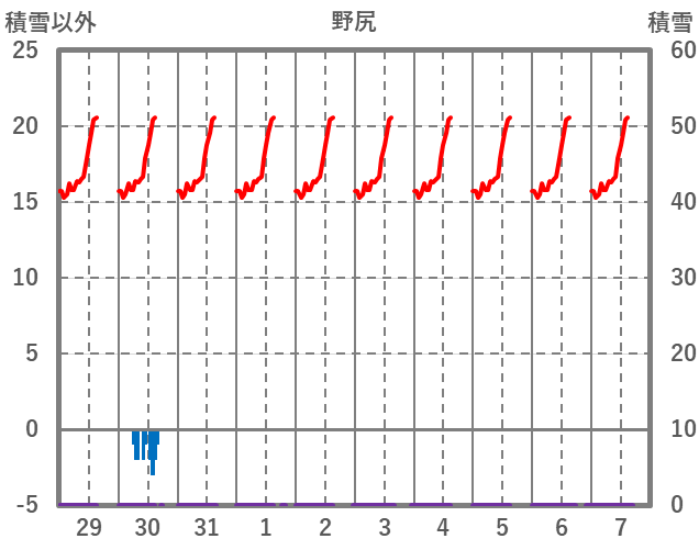 | 日 | 時 | 気温 | 降水 | 風向/風速 | 日照 | 積雪 | 降雪 |