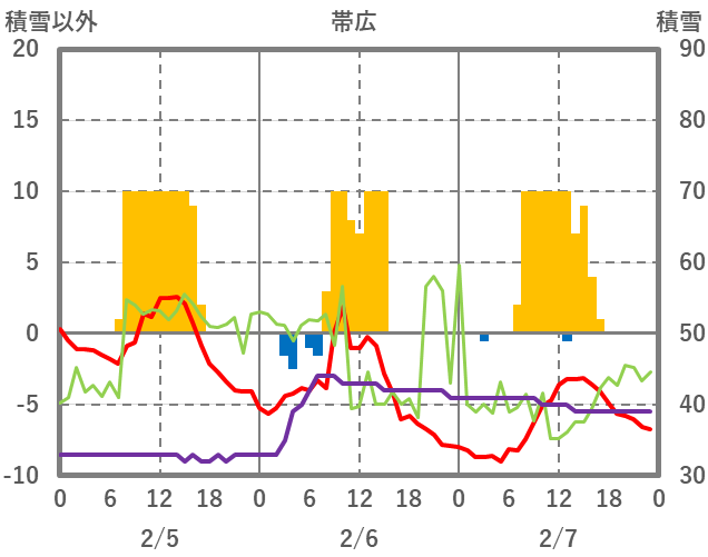 | 日 | 時 | 気温 | 降水 | 風向/風速 | 日照 | 積雪 | 降雪 |