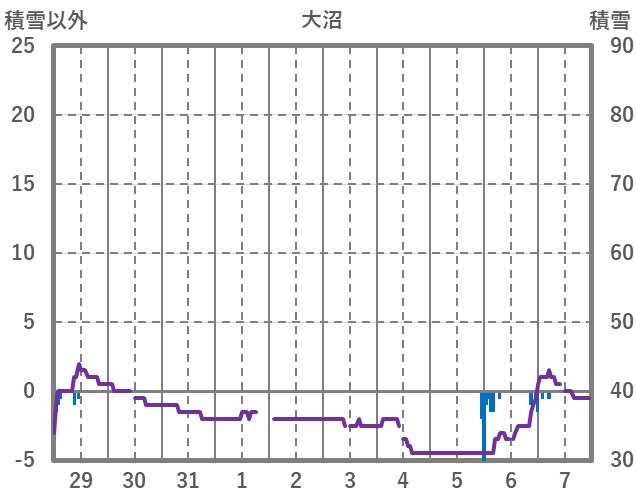 | 日 | 時 | 気温 | 降水 | 風向/風速 | 日照 | 積雪 | 降雪 |