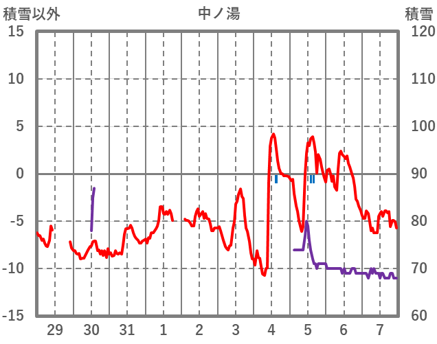 | 日 | 時 | 気温 | 降水 | 風向/風速 | 日照 | 積雪 | 降雪 |