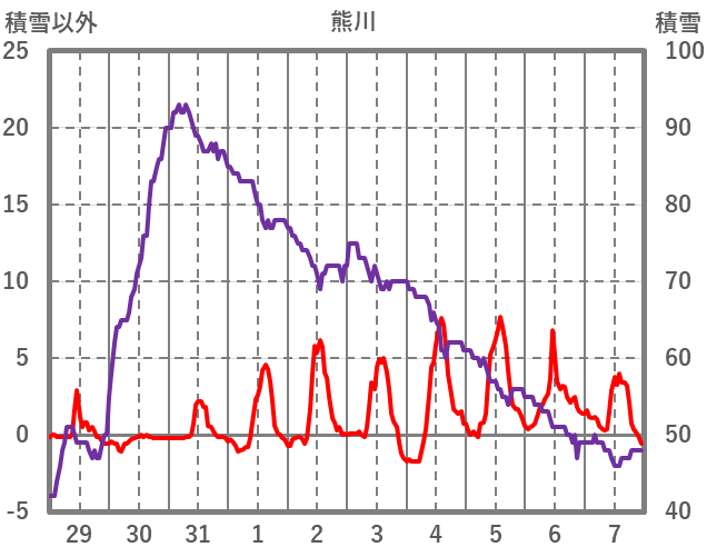 | 日 | 時 | 気温 | 降水 | 風向/風速 | 日照 | 積雪 | 降雪 |