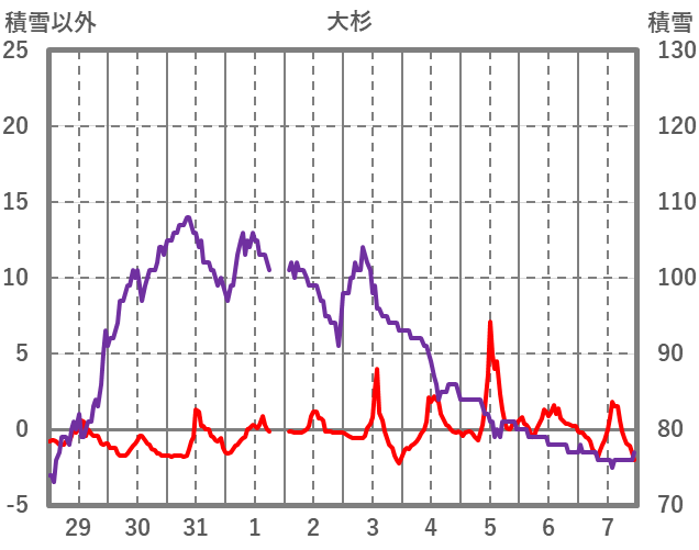| 日 | 時 | 気温 | 降水 | 風向/風速 | 日照 | 積雪 | 降雪 |