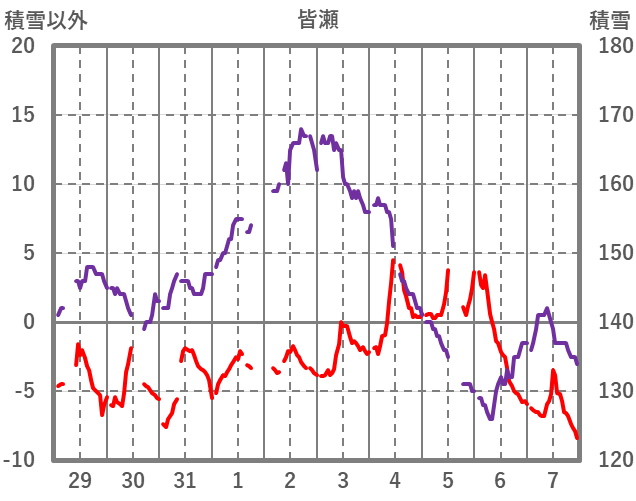 | 日 | 時 | 気温 | 降水 | 風向/風速 | 日照 | 積雪 | 降雪 |